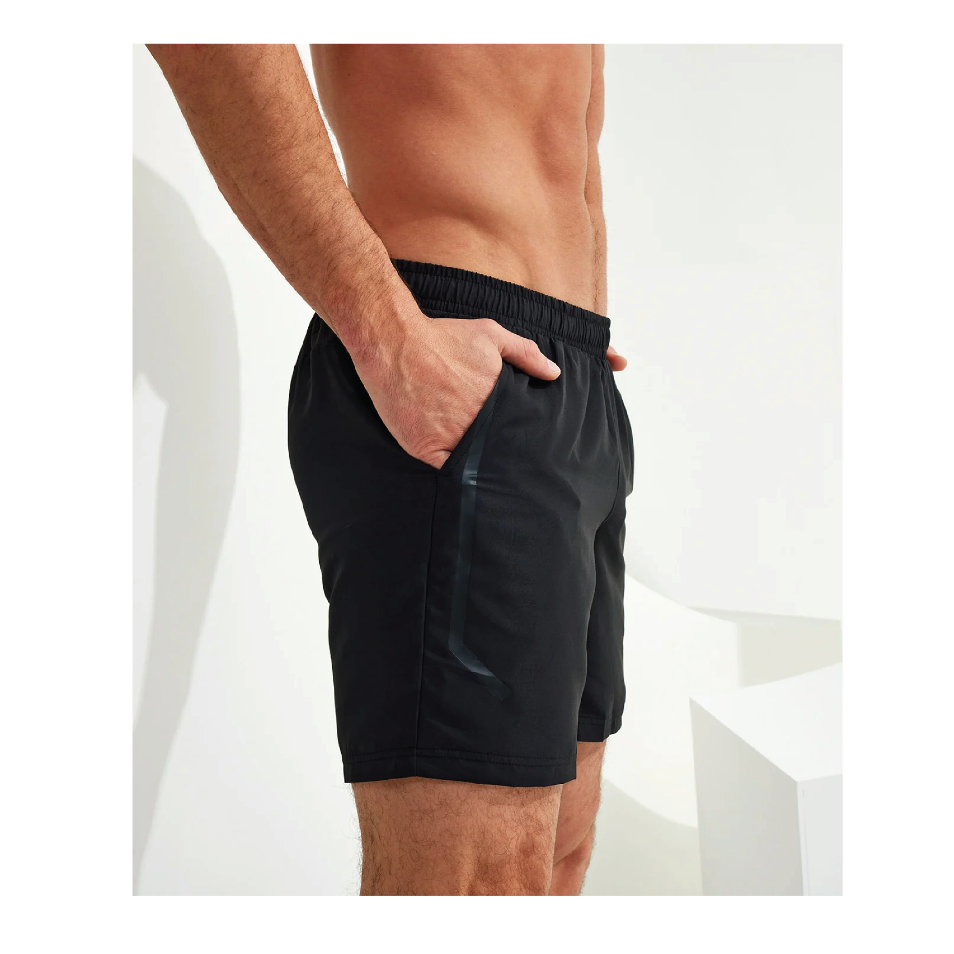 Body Transform Fitness Print to Left Leg The men's running shorts are made with moisture wicking materials to help keep you cool and comfortable on every mile. Their soft liner provides secure support where you need it, whilst a drop hem to the front of the shorts adds a unique twist.