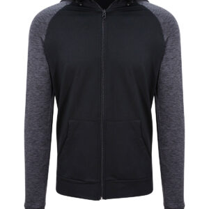 Push your limits with this innovative zoodie. Dual weights allows you to focus on your workout goals. When the nights get chilly or you need something to throw on to and from the gym, the cool sports zoodie combines wicking performance with lightly brushed fabric on the body. Adjustable attached hood protects from the elements while the raglan sleeves and thumb holes offer great range of motion.