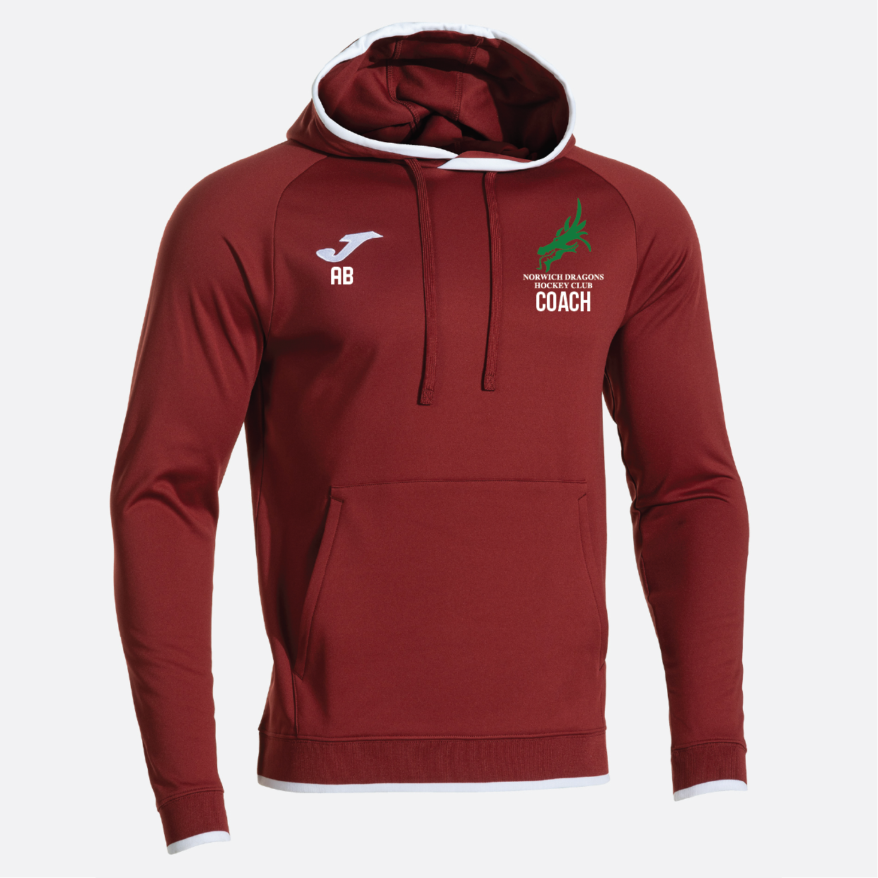 Official Norwich Dragons Hockey Club Joma Combi Premium Coaches Hoodie in Burgundy/White