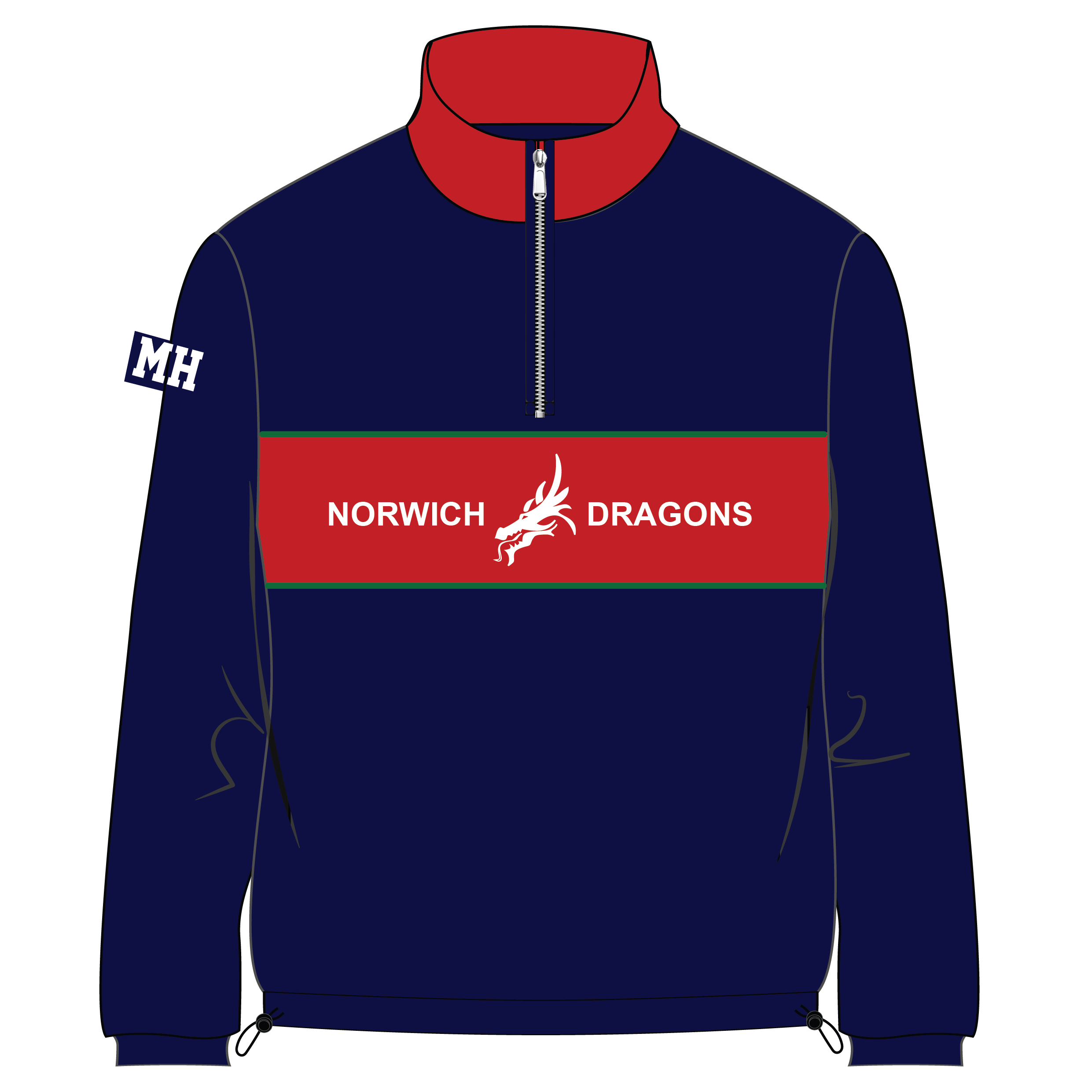 This is a fully bespoke, cut & sewn garment, made to order exclusively for Norwich Dragons Hockey Club.