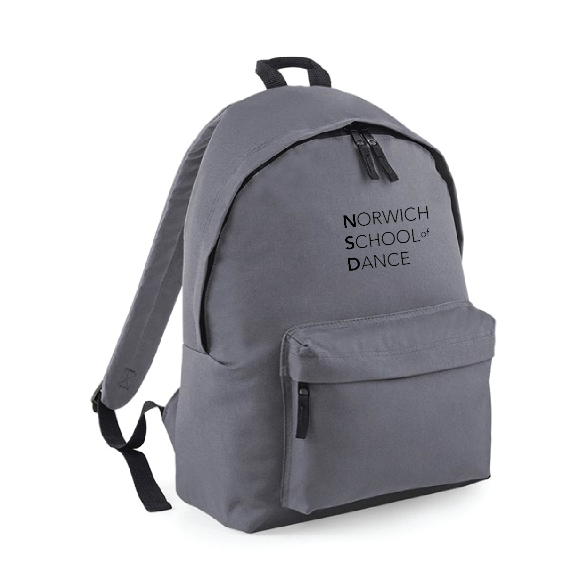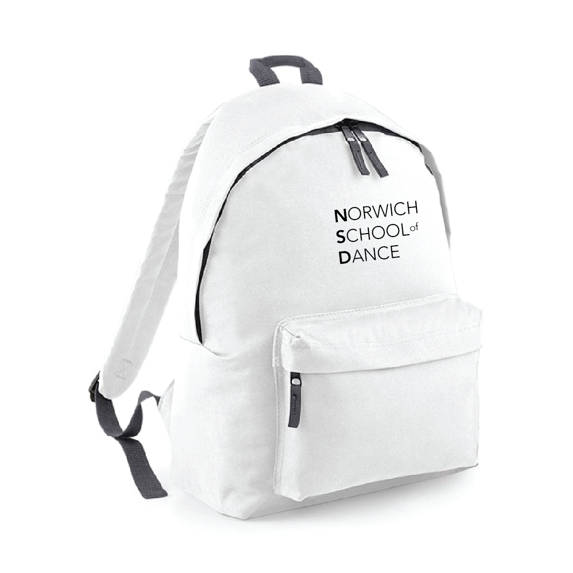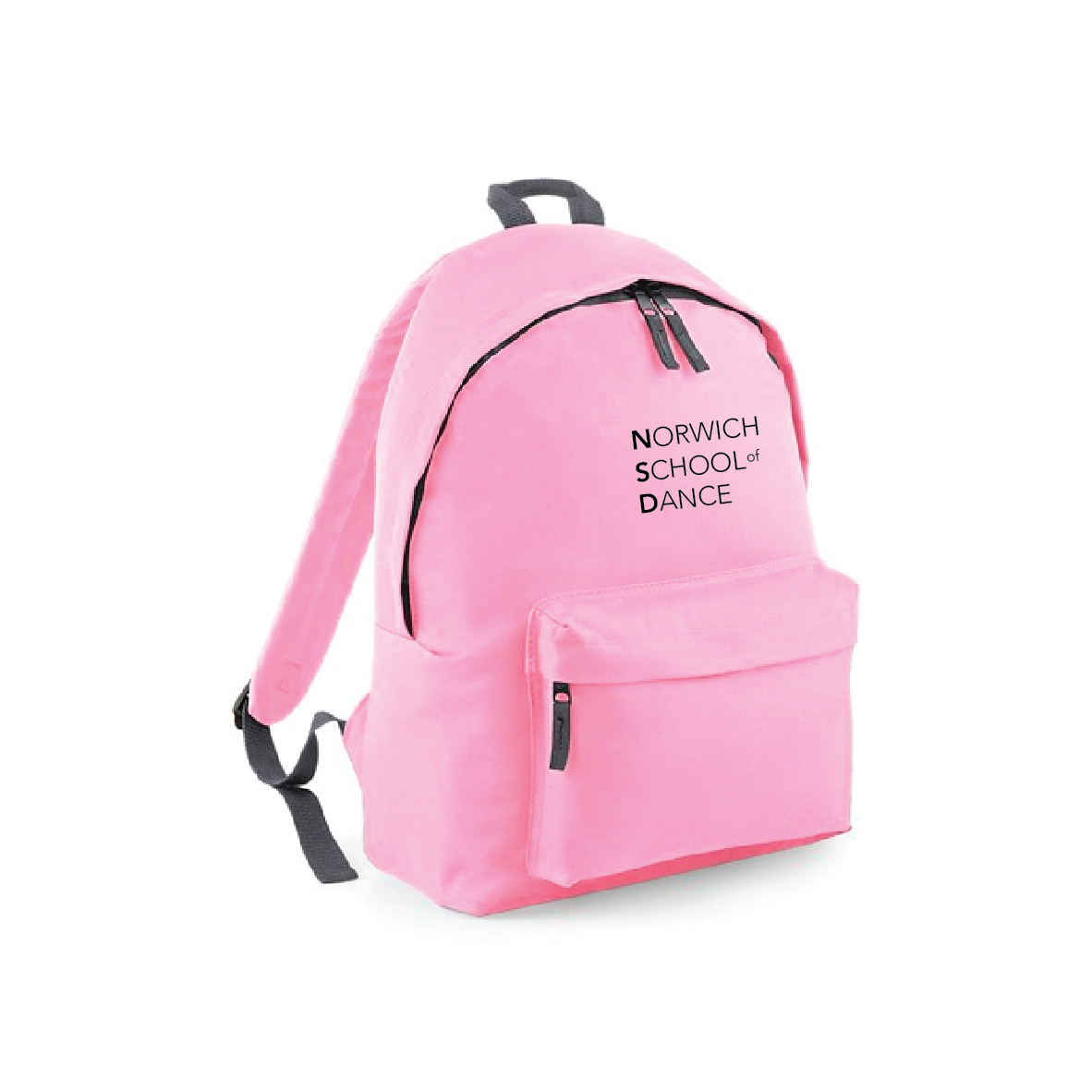Norwich School of Dance or 'Dancer" Print to Front Zippered front pocket Padded adjustable shoulder straps